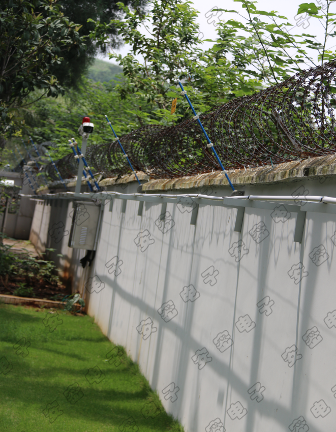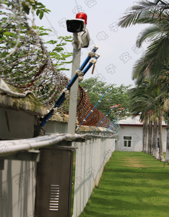 周界入侵报警系统,就是在周界设置脉冲电子围栏探测器,形成一道电子围墙进行防范和管理。电子围栏系统是第一道防线,也是最重要的一道防线。担负着营区的安全与保卫工作。当有人非法翻越围墙或破坏,探测器可立即将警情传送到管理中心,管理中心对报警信号进行接收和处理,营院管理终端弹出的入侵区域的监控画面;中心人员通知营区岗哨立刻赶往现场处理,第一时间预警。
