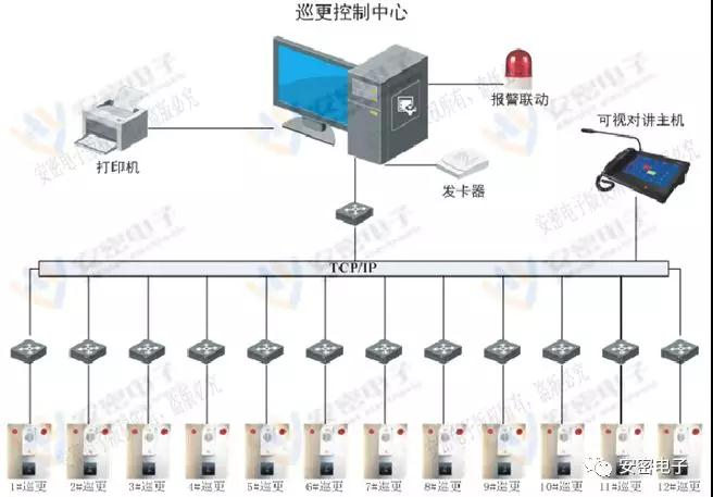 查铺查哨及电子巡更报警系统采用在线式巡更方式,巡更点实时读取到有关信息,并实时上传到管理系统,供系统分析、处理;若在规定的时间未进行巡更,系统实时报警,并按要求生成巡查报表;巡查报表能真实准确的反映巡查情况,如有无漏查、是否按时巡查等信息。
